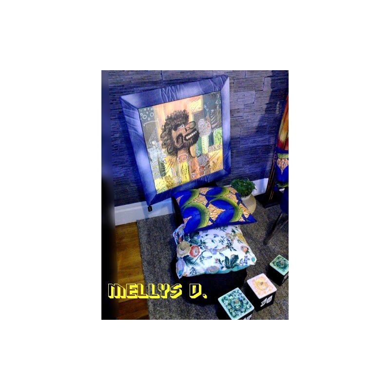 Mixed technics , unique art work ,Painting, handmade, cotton canvas, wooden frame/denim, back/felt