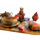 Mixed technics on wood, unique art work, Wooden tray, hand-painted and varnish, pvc and faïence, porcelain