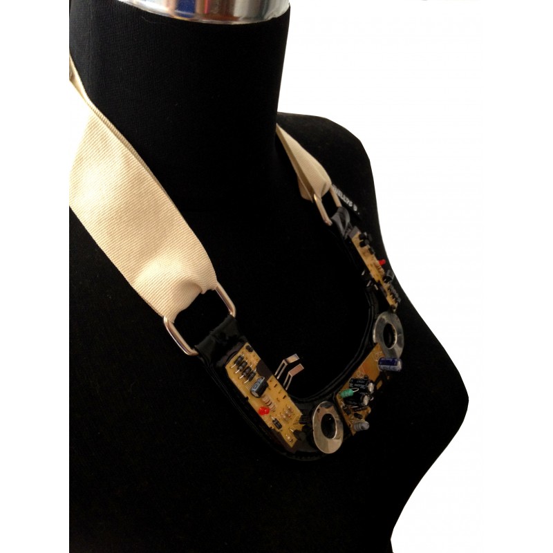 Plastron necklace, Imitation leather, Stainless steel, Printed circuit, cordon scratch