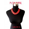 Necklace, plastic/neon pink, snap rings and metal clasp stainless steel