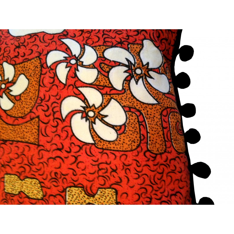 front New Caledonia cotton fabric, black pompom- back black cotton